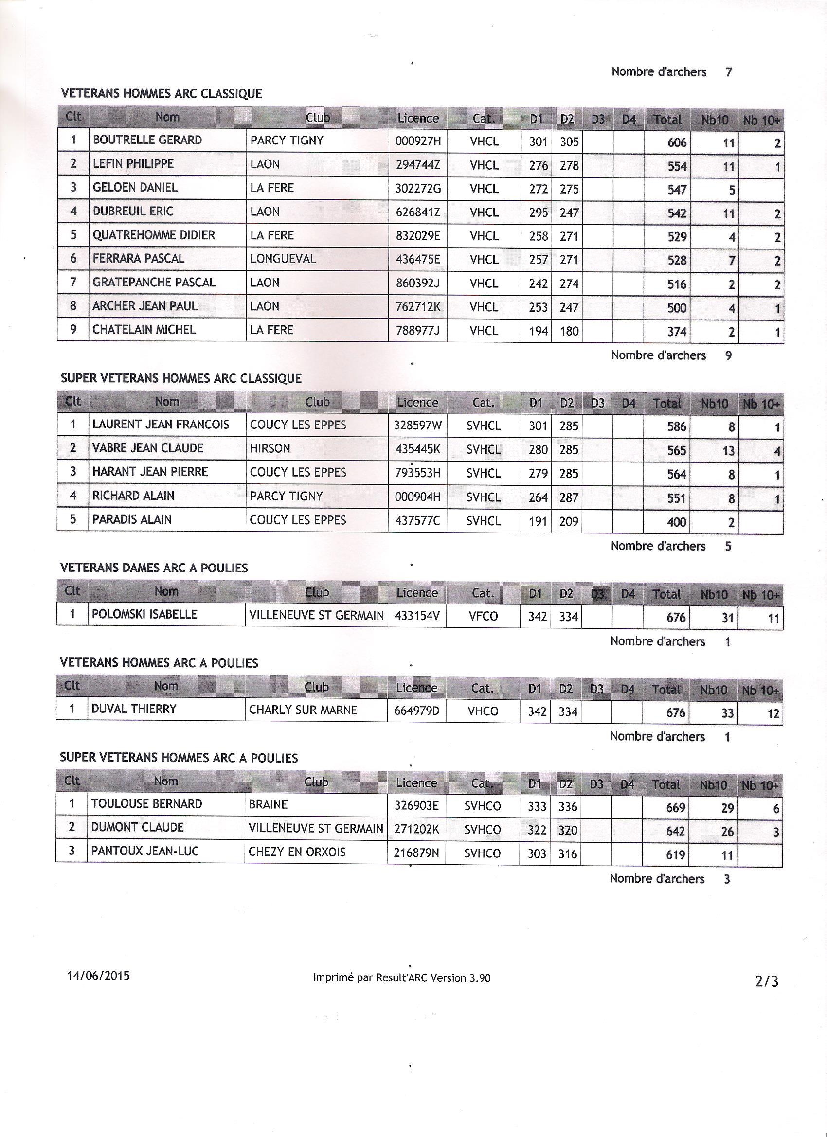 Concours salle 2x18m à Laon du 14 et 15 11 2015